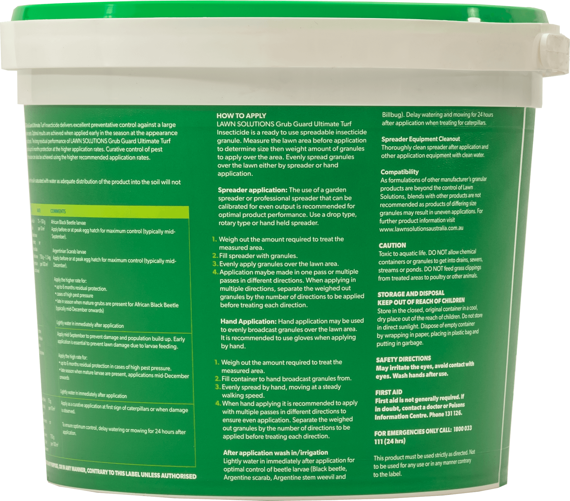 Lawn Solutions Grub Guard Ultimate Turf Insecticide delivers excellent preventative control against a large range of common lawn pests. Optimal results are achieved when applied early in the season at the appearance of overwintering adult pests.