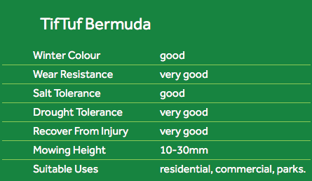 After many years of extensive independent testing and research, TifTuf Hybrid Bermuda (Couch Grass) is the first and only turf grass to receive this for drought tolerance in Australia or anywhere in the world.